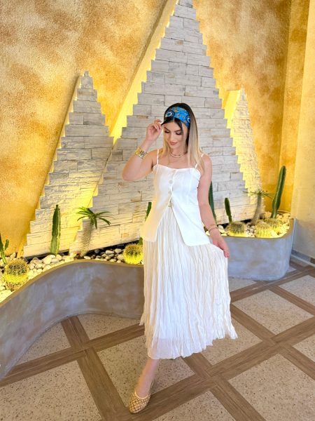 • Beyaz Kırışık Uzun Etek - 13 % İndirim