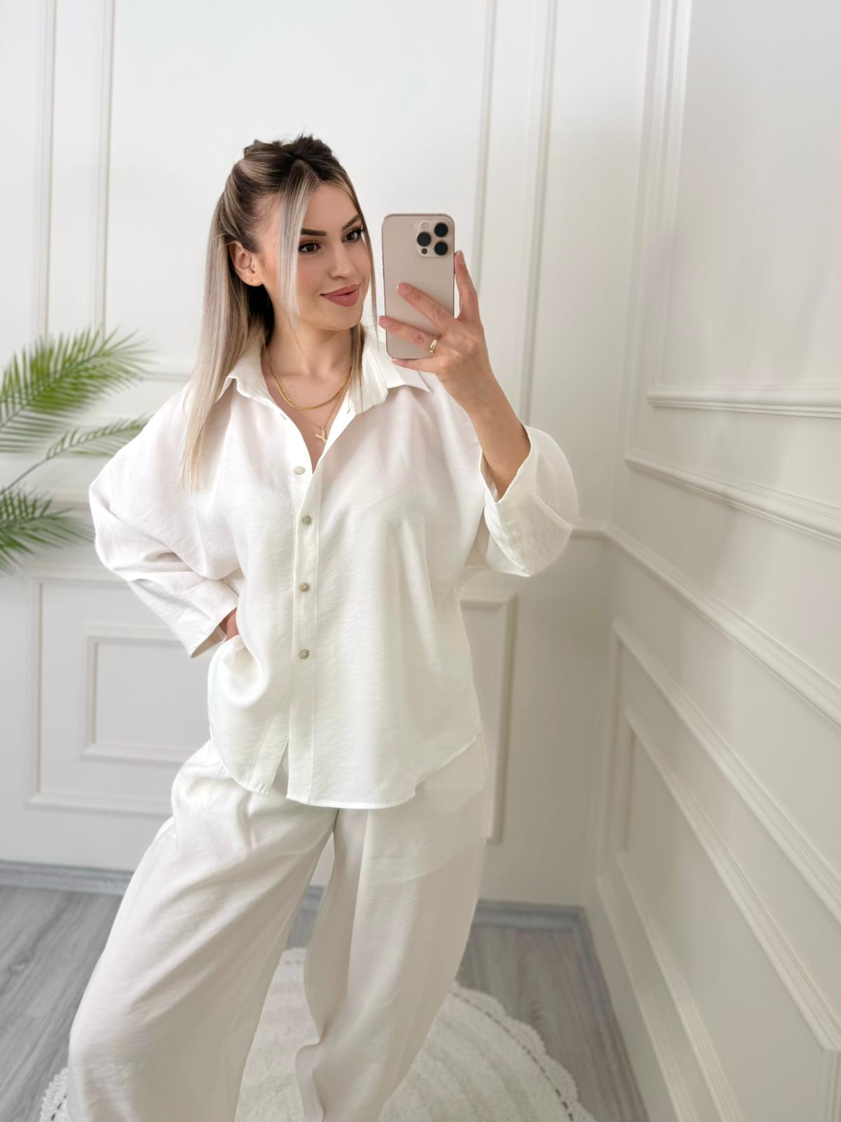 Beyaz Tensel Kumaş Şalvar Model Takım