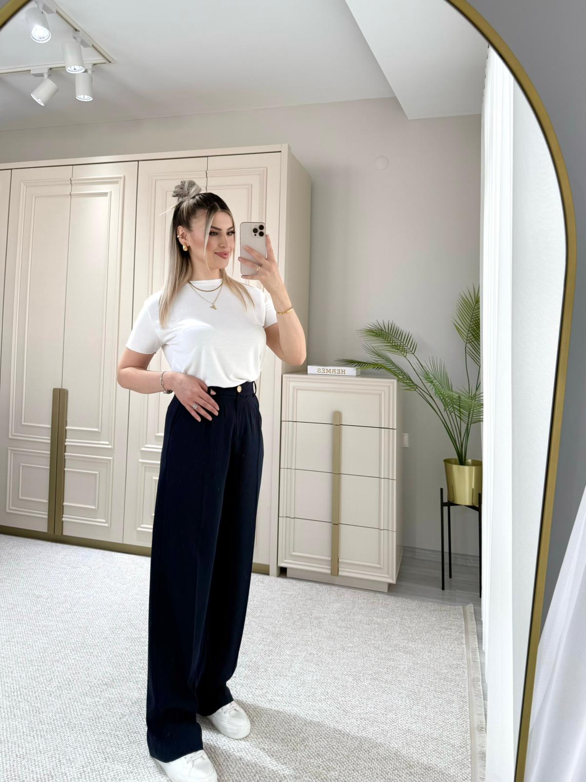 Lacivert Gold Düğme Detaylı Palazzo Pantolon