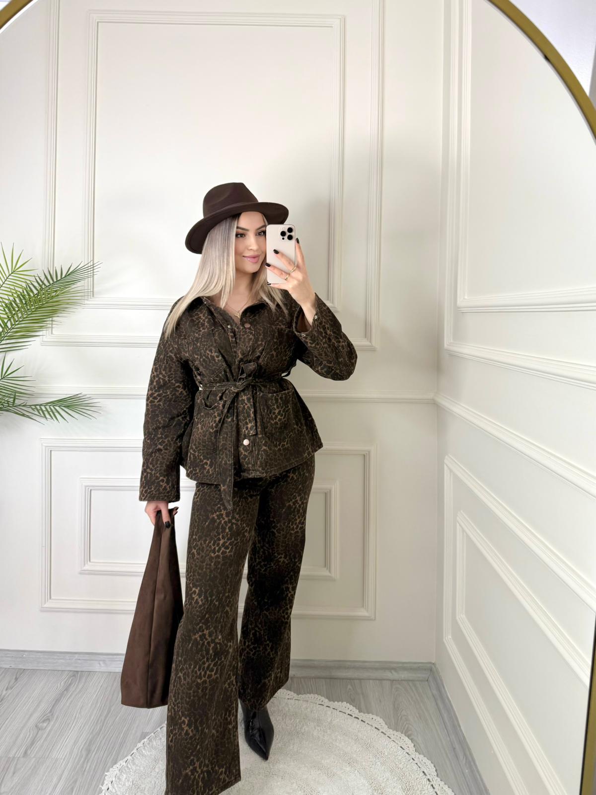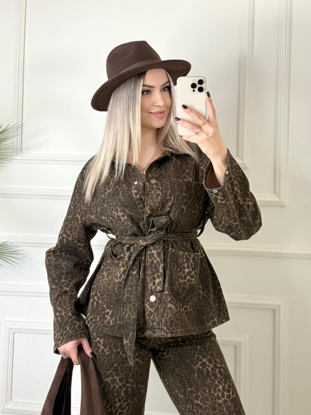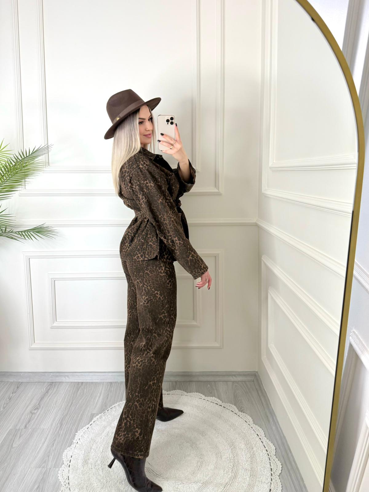 Leopar Kuşaklı Denim Takım