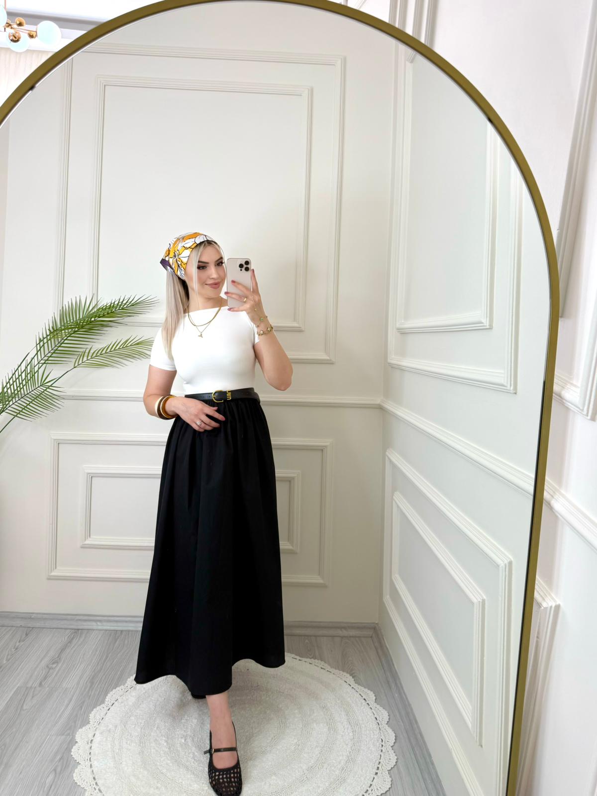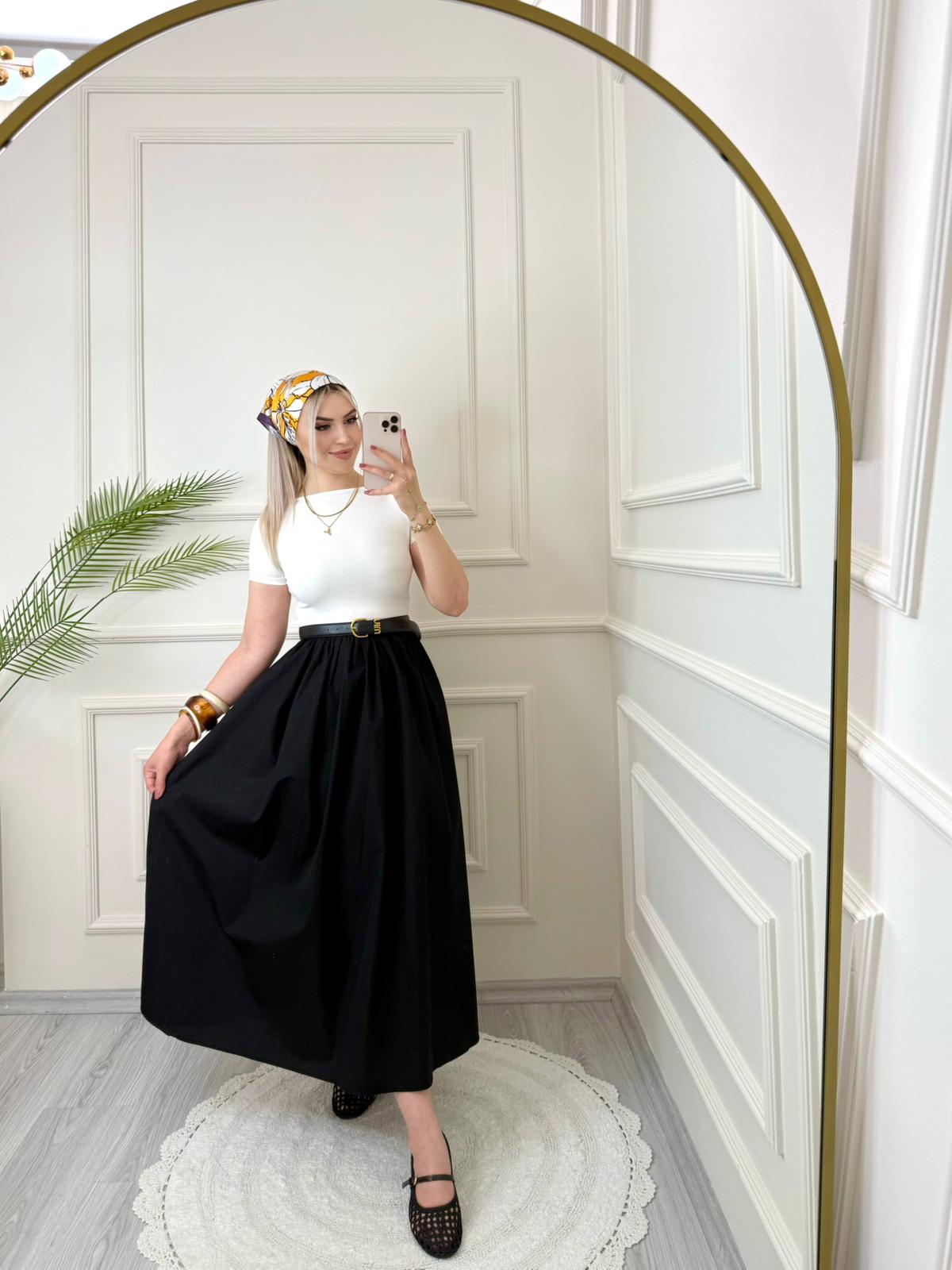 Siyah Beyaz Debose Kısa Kollu Elbise
