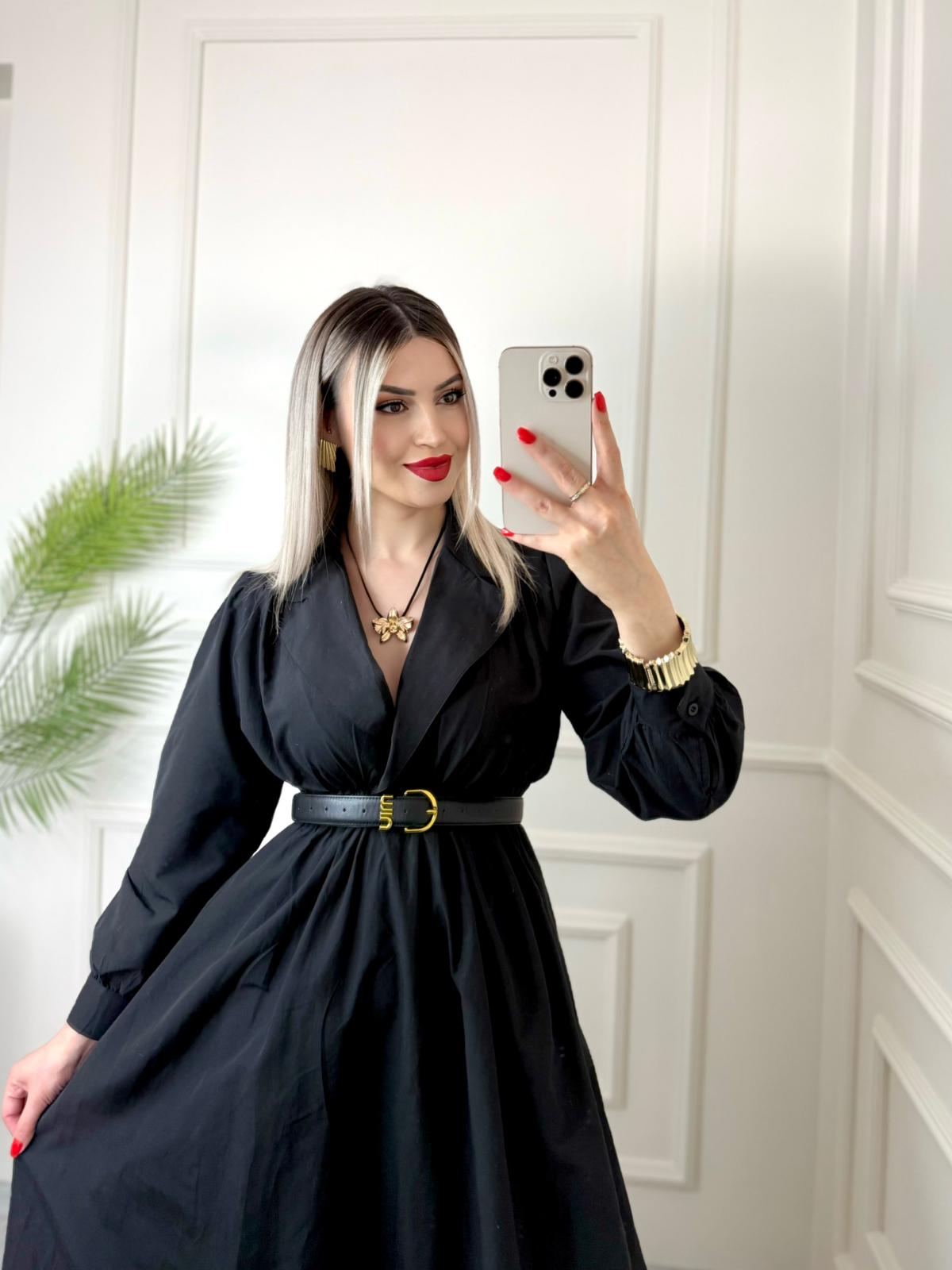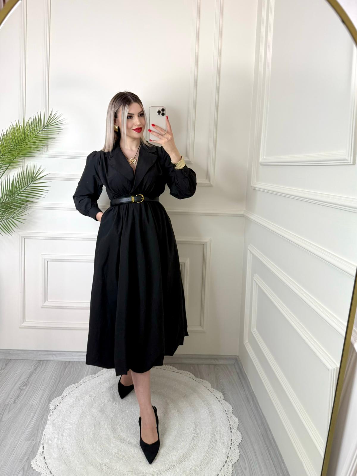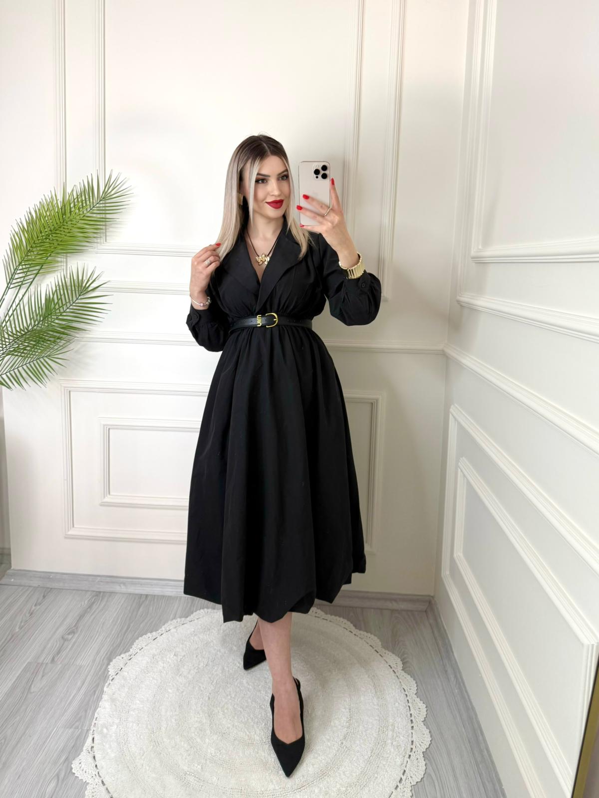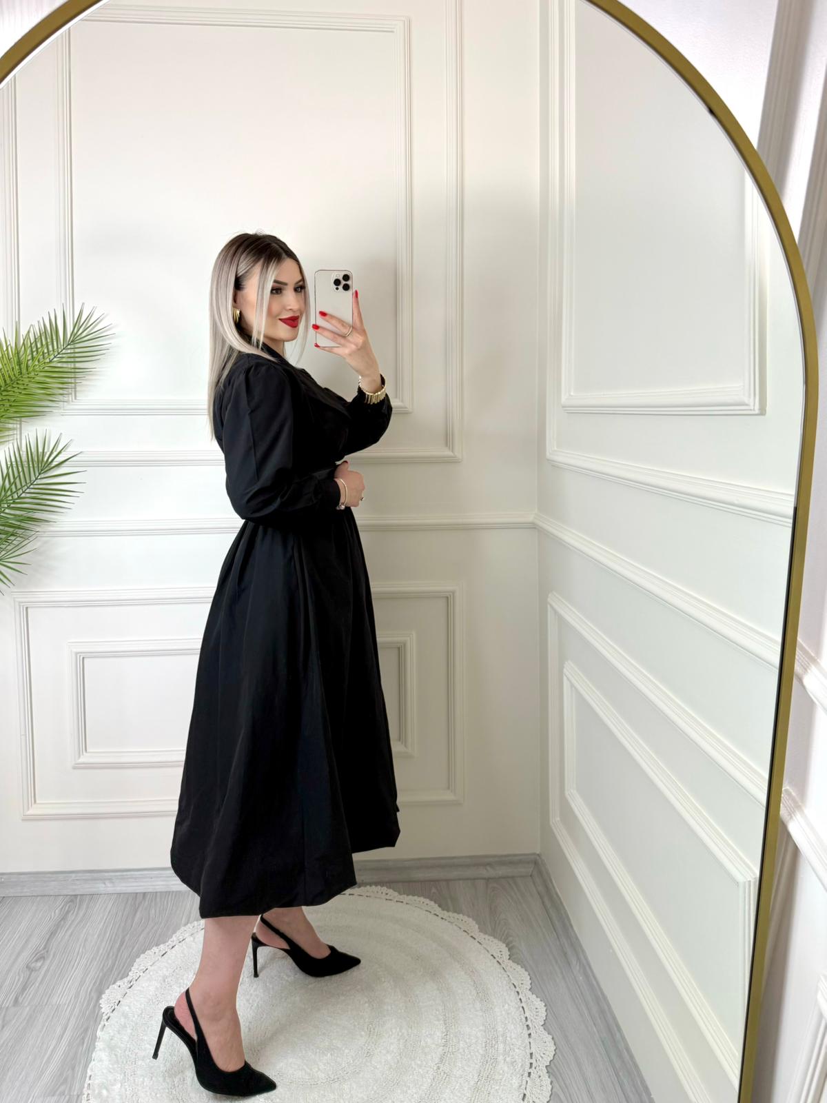 Siyah Kruvaze Yaka Paraşüt Elbise