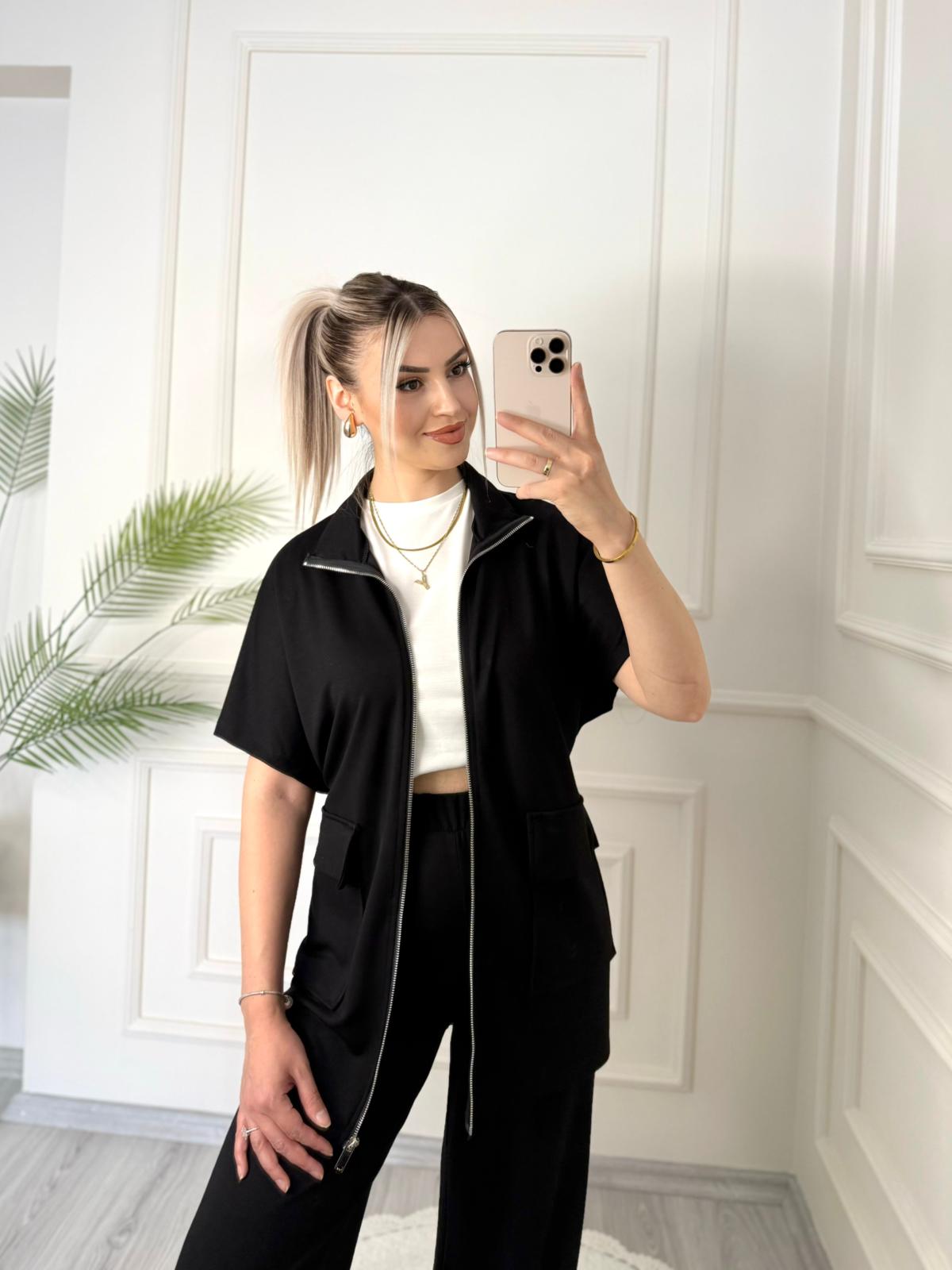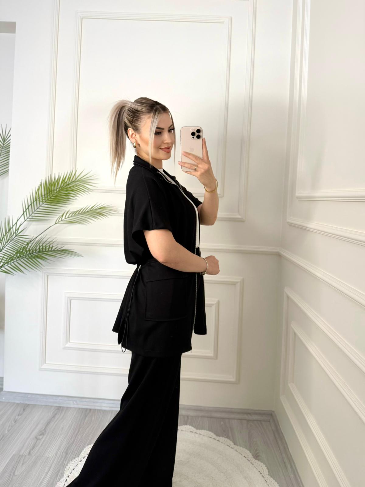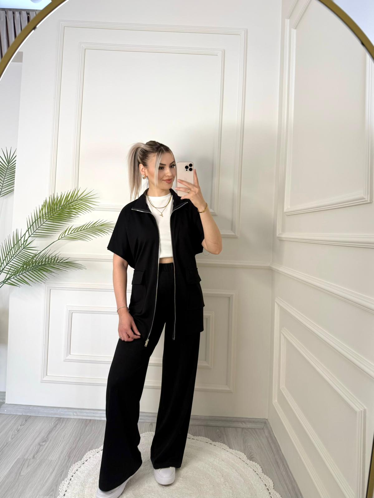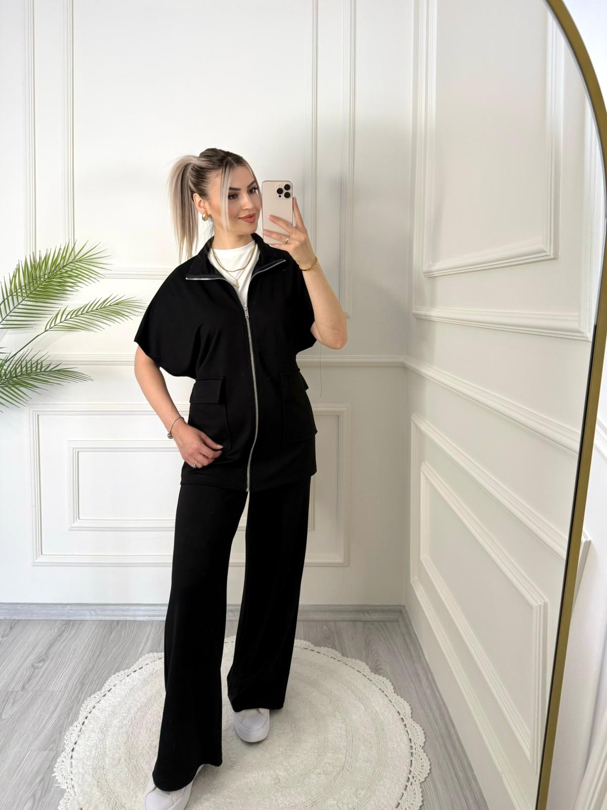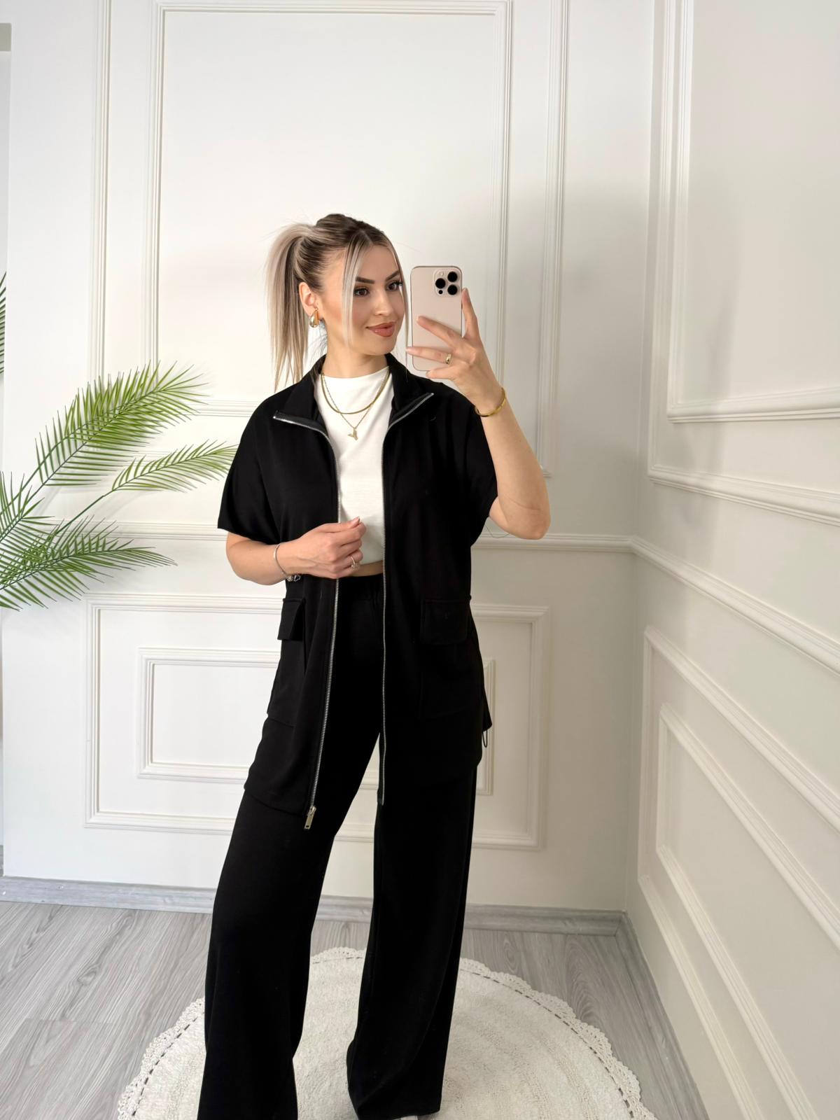 Siyah Ön Cep Detaylı Yelekli Modal Takım